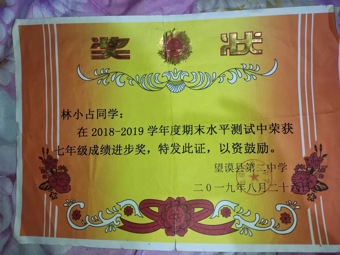 2019年期末水平测试成绩进步奖