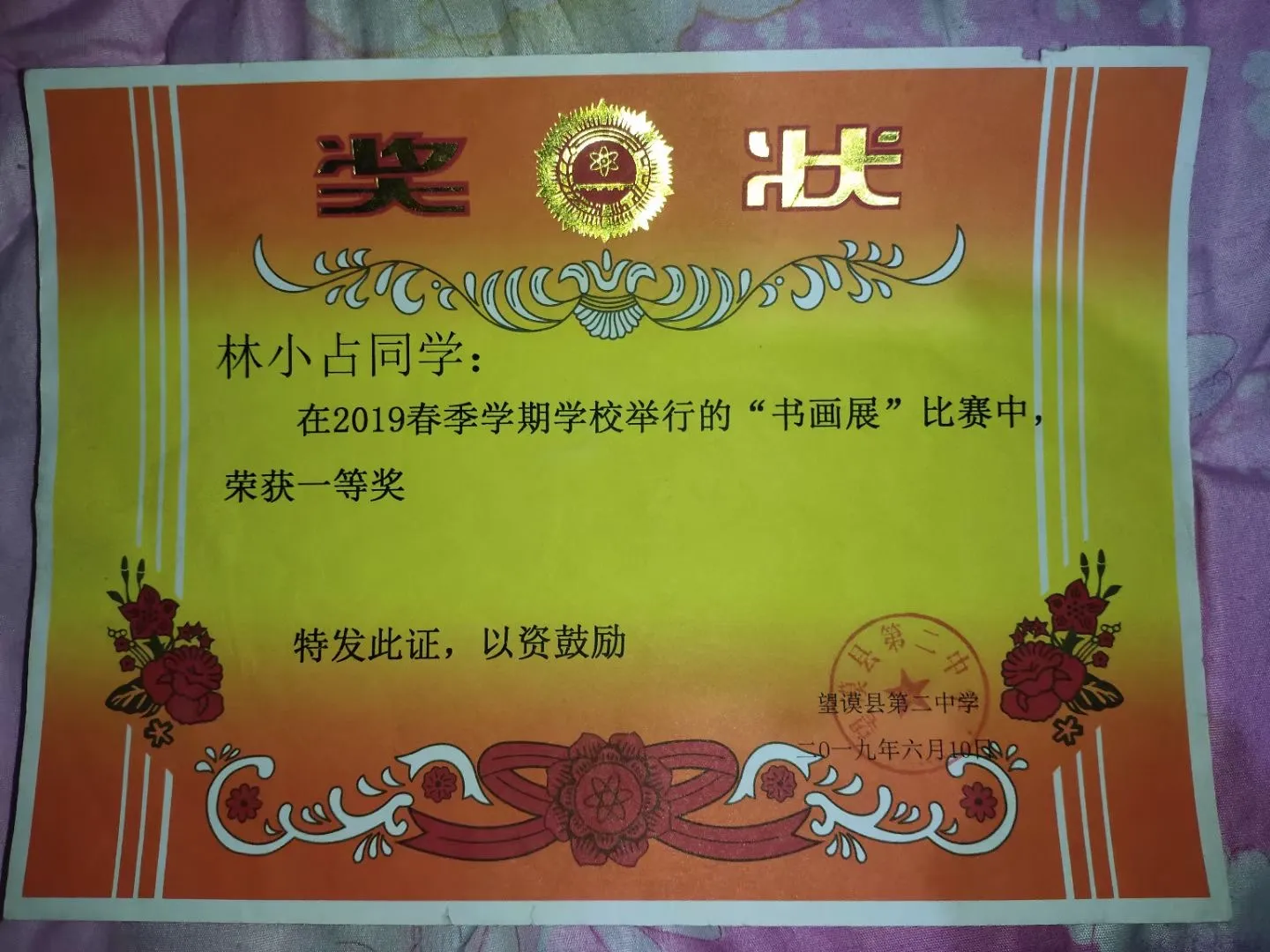 2019春季学期“书画展”比赛一等奖