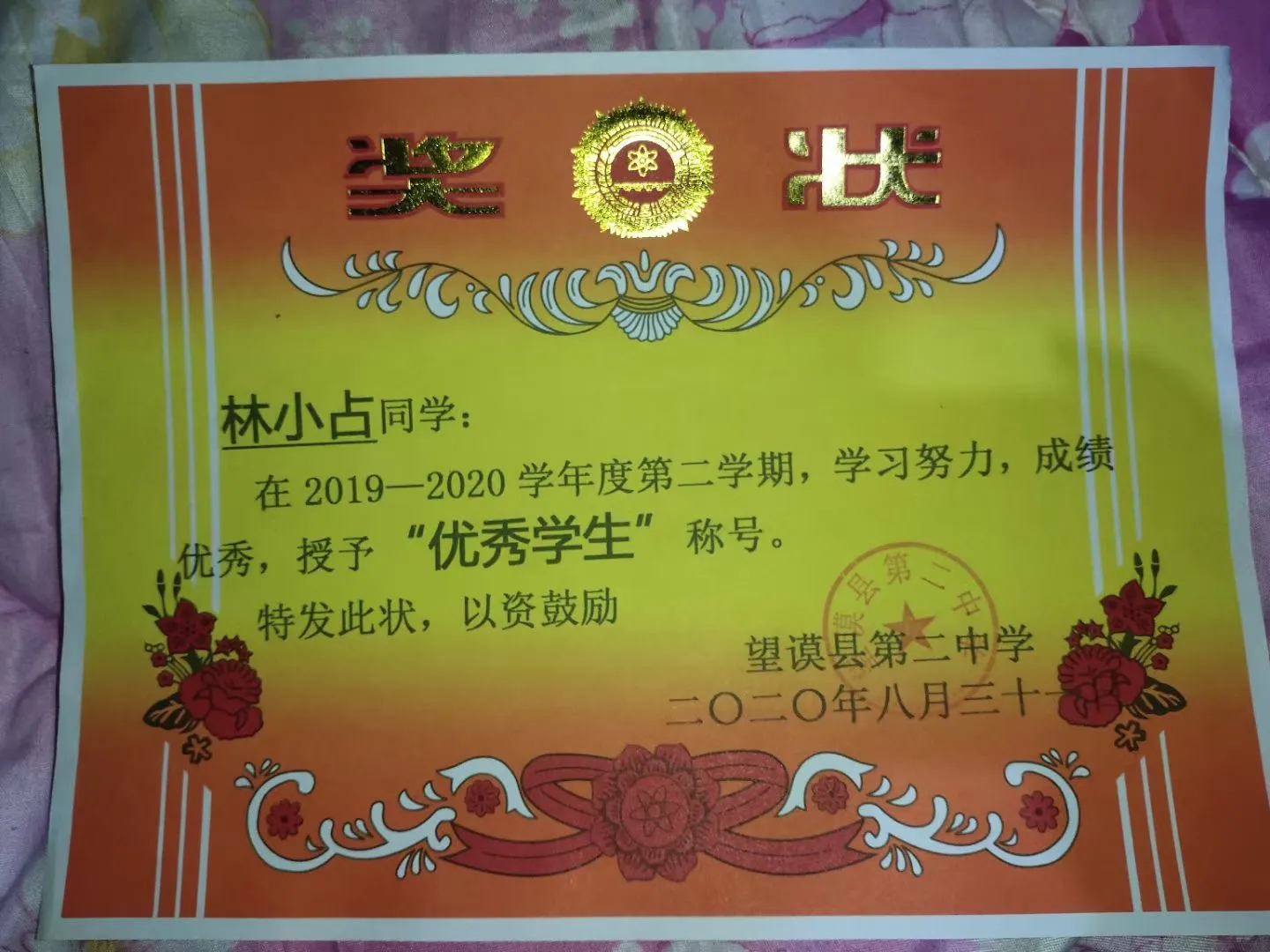 2020年第二学期”优秀学生“