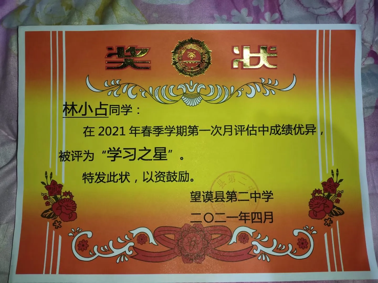 2021年春季学期“学习之星”
