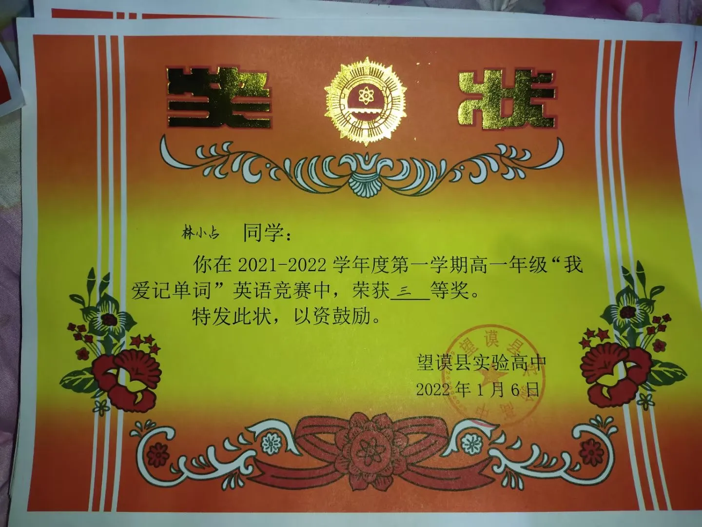 2022年高一年级“我爱记单词”英语竞赛三等奖