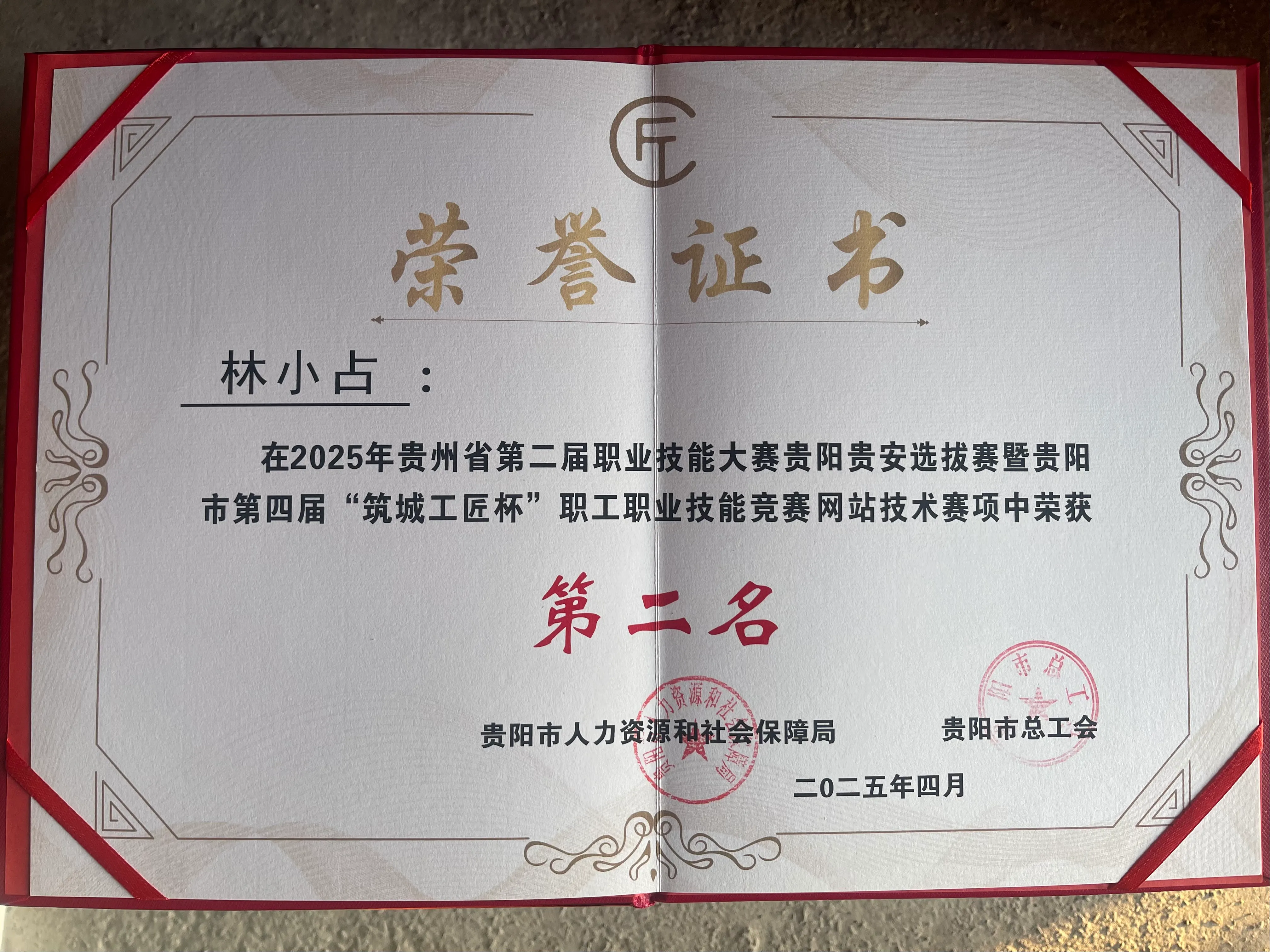 2025年贵州省第二届职业技能大赛贵阳贵安选拔赛暨贵阳市第四届“筑城工匠杯”职工职业技能竞赛网站技术赛项第二名