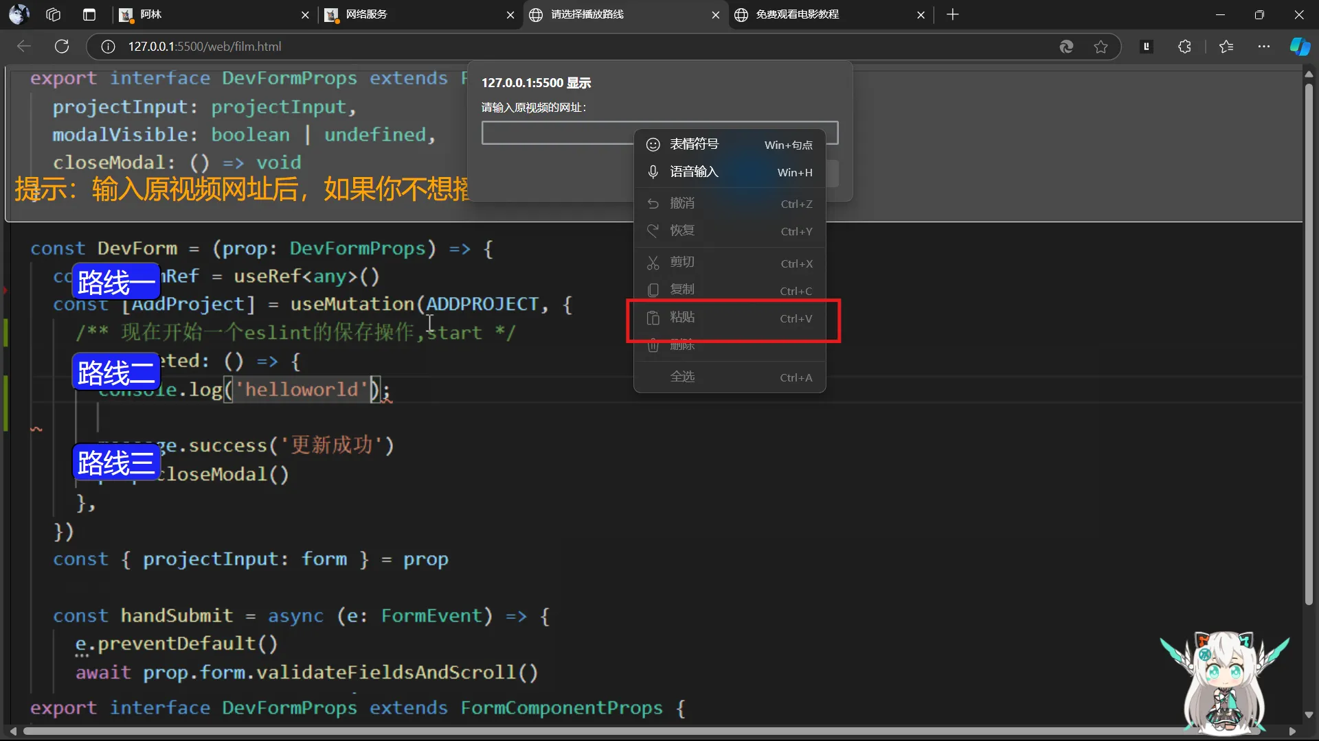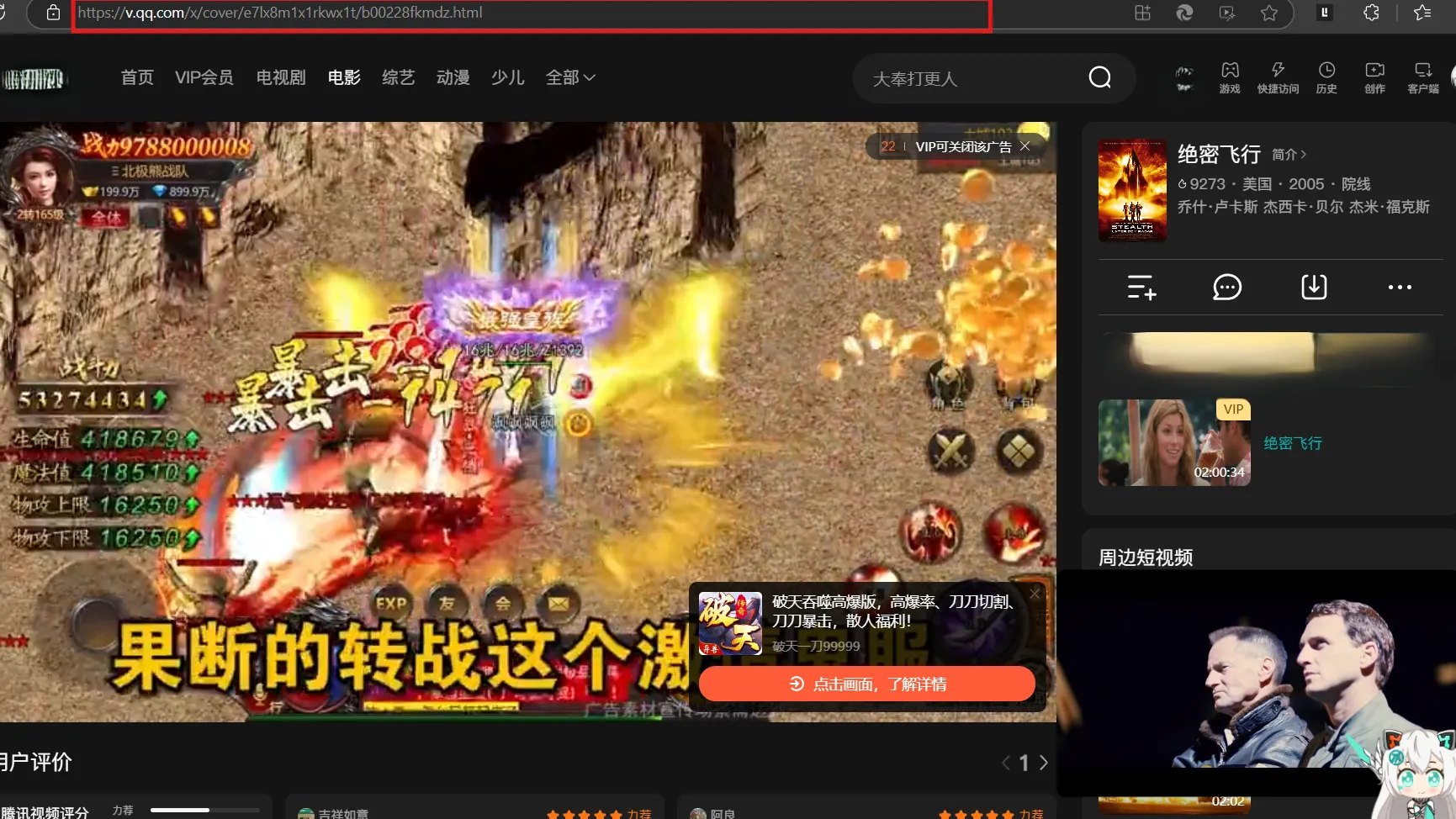 2.搜索电影播放平台,并在网址栏右键复制要播放的电影网址