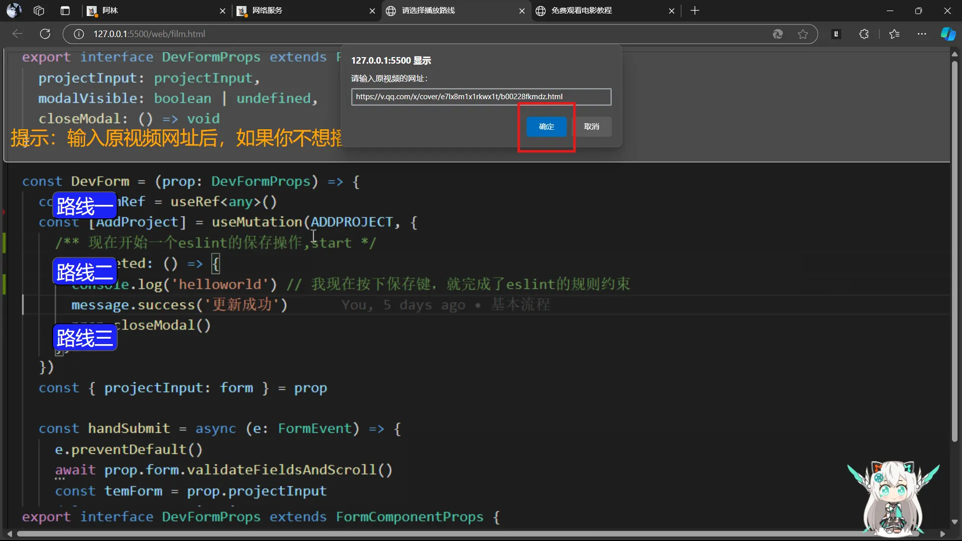 6.点击“确定按钮”并等待视频加载