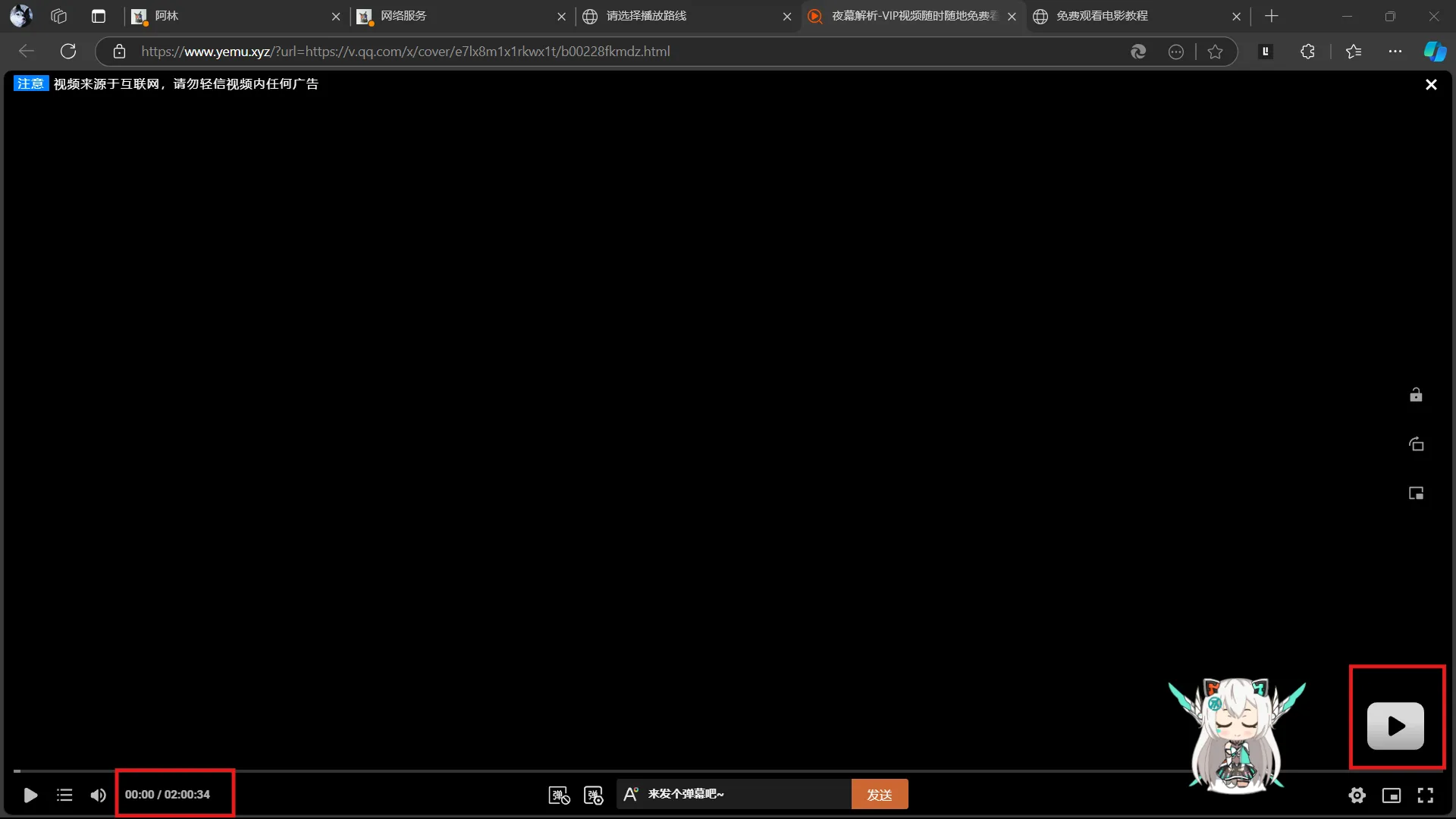 7.视频加载出来后等待左下角视频时长加载出来后点击右下角的三角播放按钮,即可免费观看电影